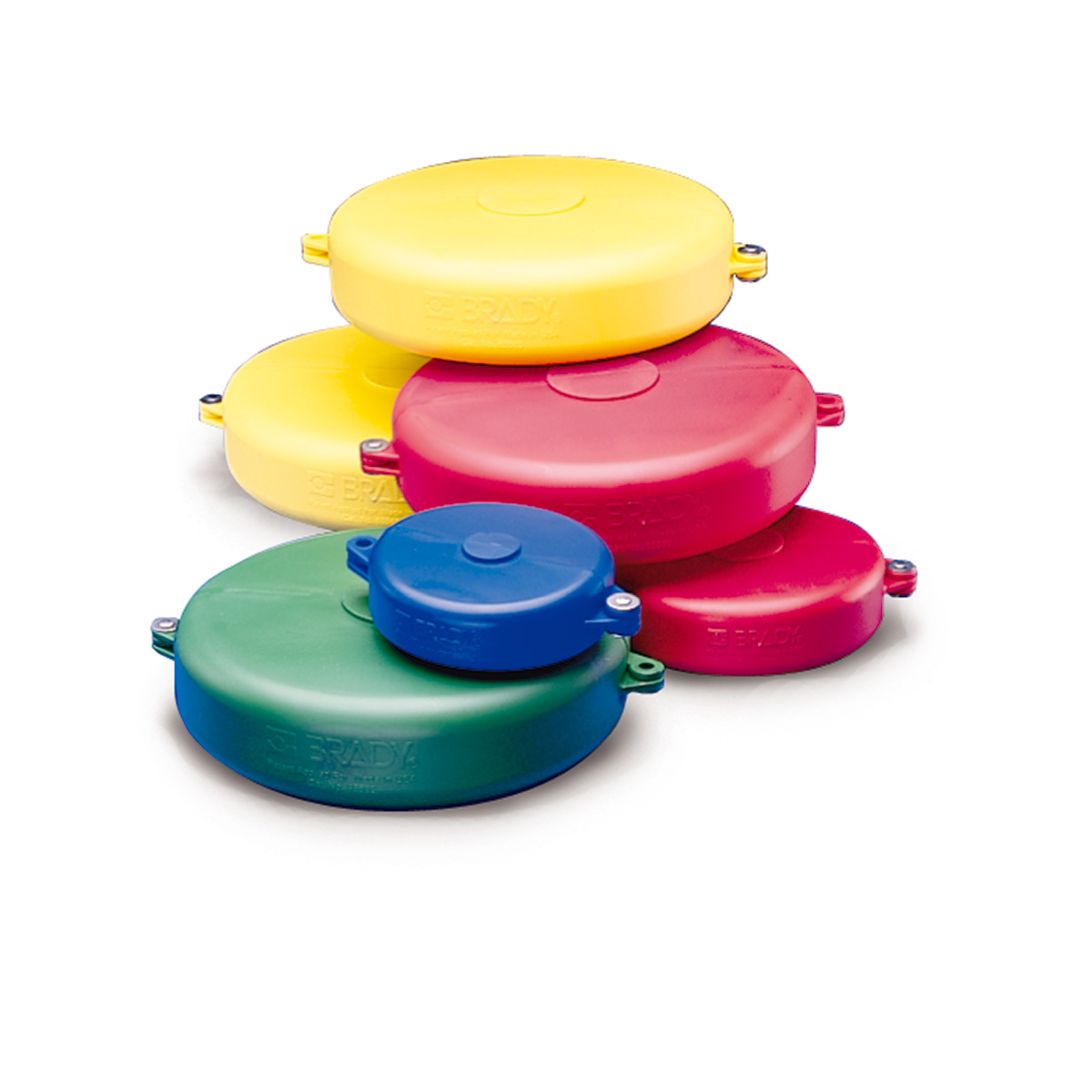 Gate valve lockout devices deny access and cover the valve handle. This device’s unique knockout center fits OS&Y or “rising stem” valves.
